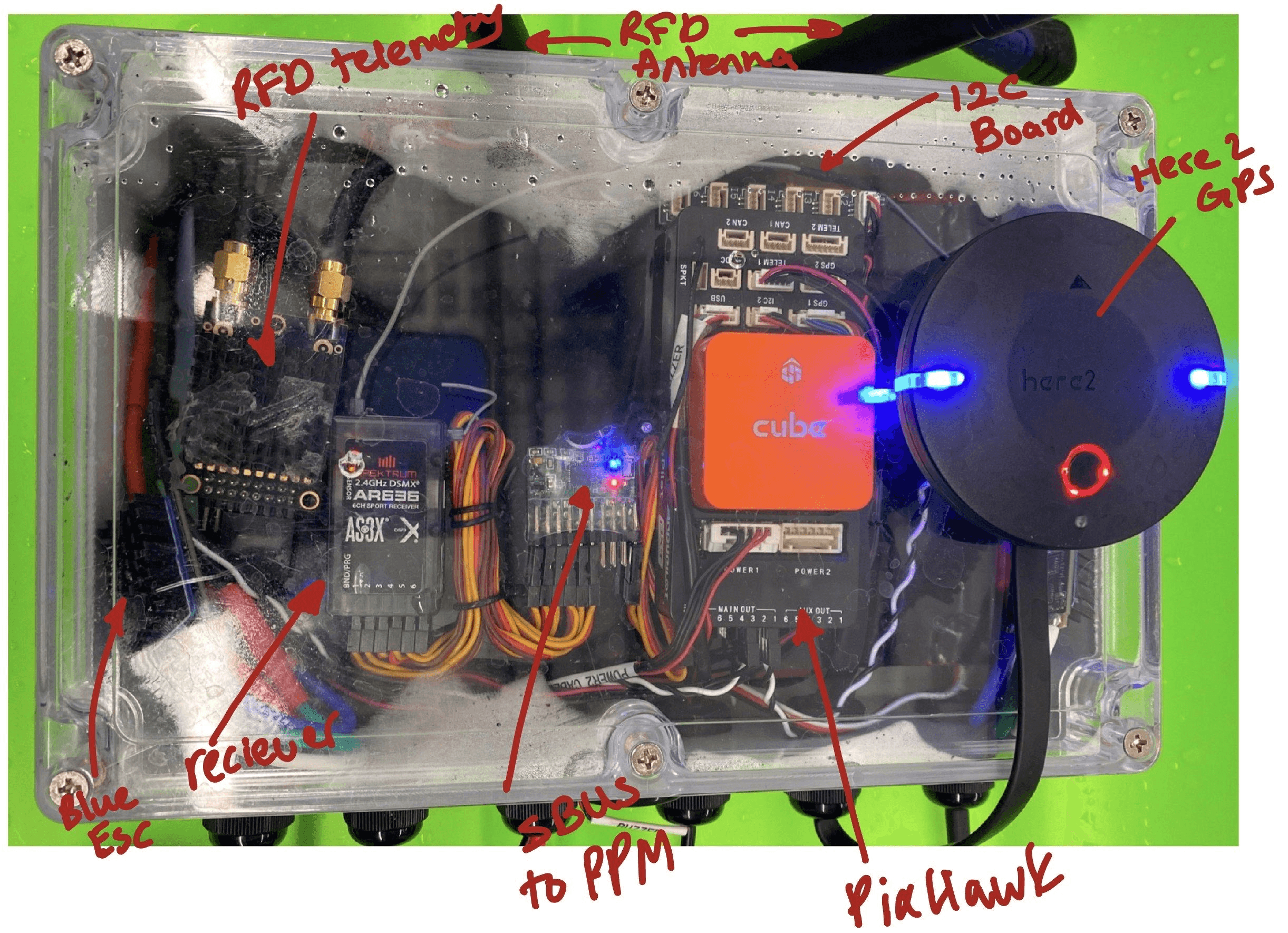 I also served as the main mechanical engineer on a reinforcement learning boat project. I worked on mounting solutions for the T500 thruster to the kayak (accounting for wiring, and no modifications to the hull). I also worked on creating a thruster protection system that prevented sticks and debris from halting experiments. I also worked on selecting adequate electronics and a watertight electronics enclosure for the project. Finally I worked on using ROS2 and the Pixhawk to generate telemetry data from the boat to be passed to the machine learning model.