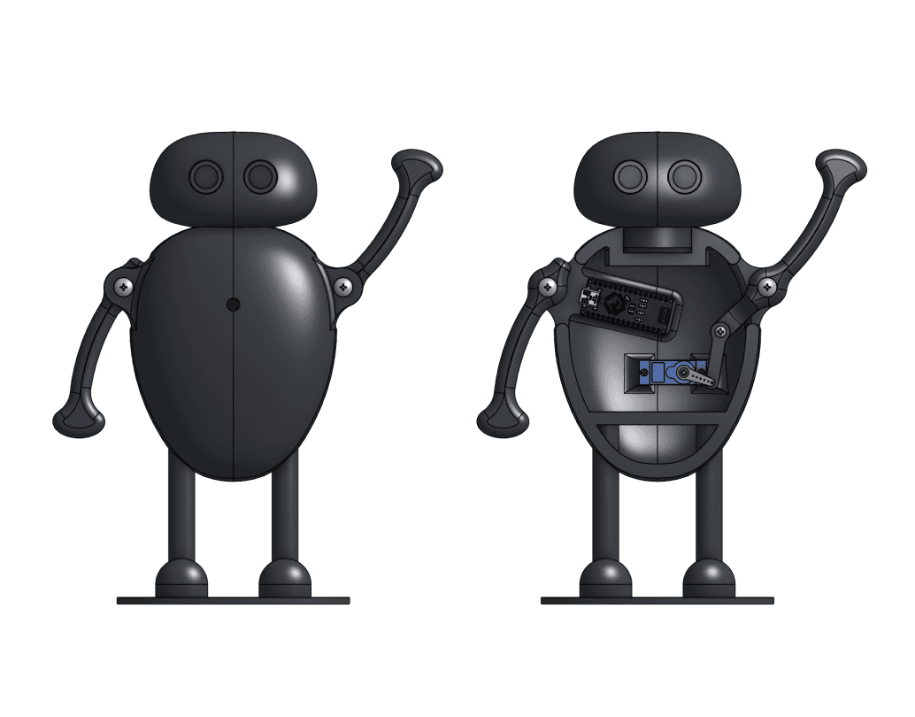 I had to design a user-friendly, compact, and 3D-printable robot that would wave in response to an ultrasonic sensor. Designing such a robot wasn’t too difficult at first glance as I had designed more complex ones before, but when creating a design that was both functional and easy for kids to assemble things become a lot more tricky. The final version, loosely inspired by Eve from the movie Wall-E, came together within a tight two-week timeline. Beyond design, I also oversaw the manufacturing and quality control of the 3D printed parts for all 15 robot kits.
